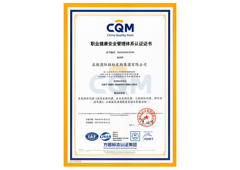 • 职业健康安全管理体系认证ISO45001