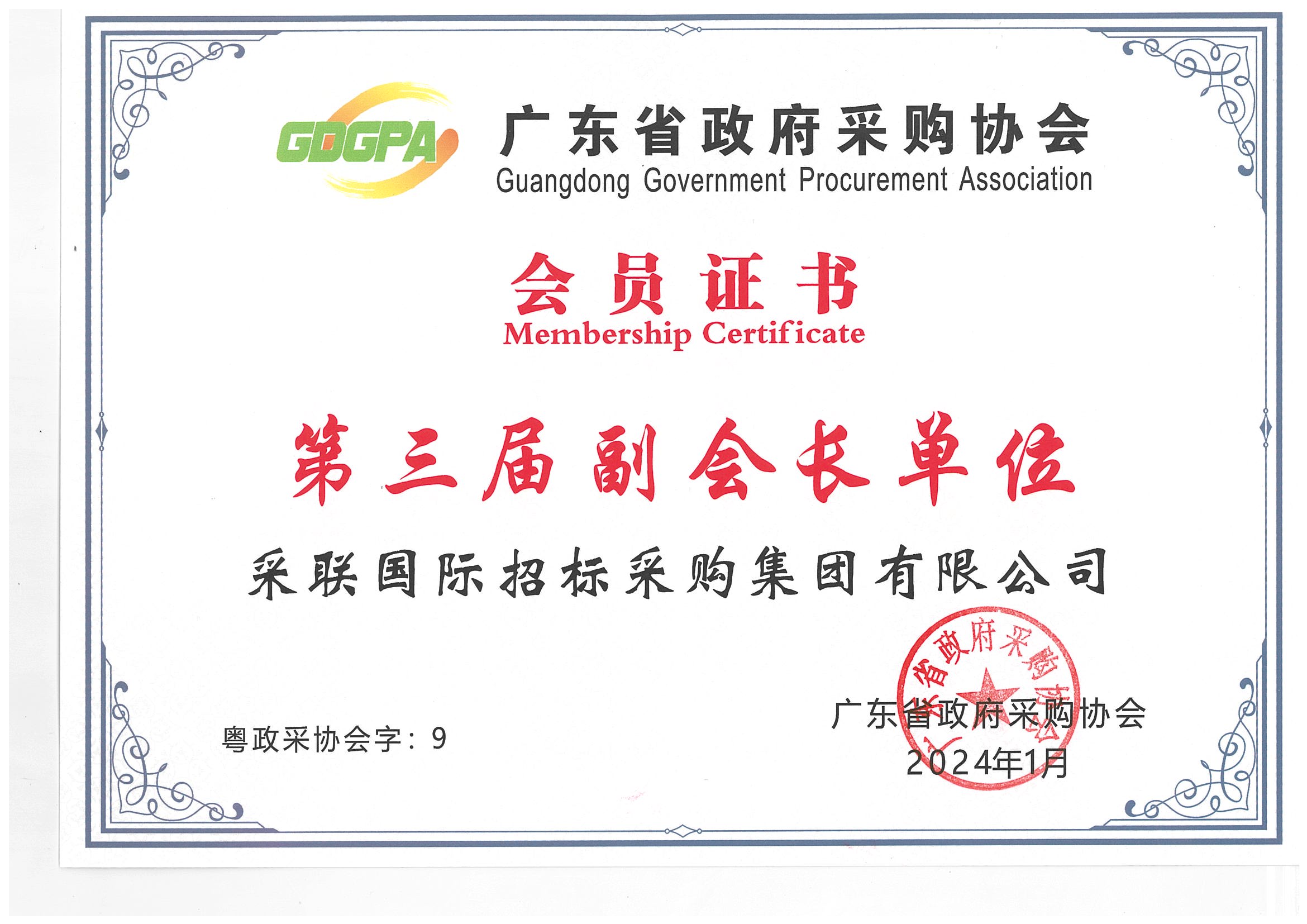 广东省政府采购协会第三届副会长单位