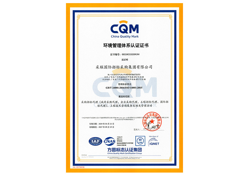 • 环境管理体系认证ISO14001