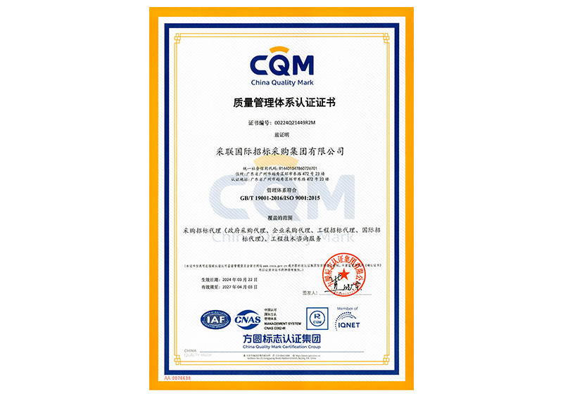 • 质量管理体系认证ISO9001