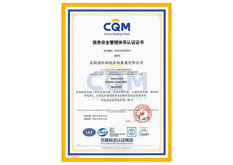 • 信息安全管理体系认证ISO27001