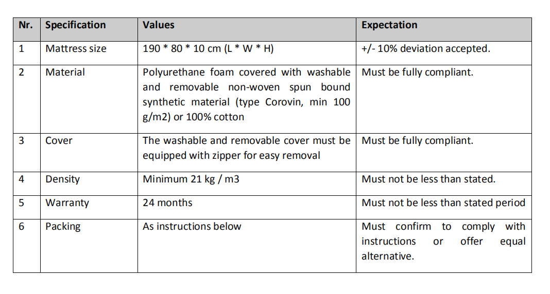 项目名称 :床垫采购
