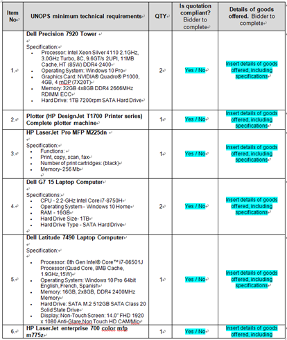 项目名称 :阿富汗办公设备采购