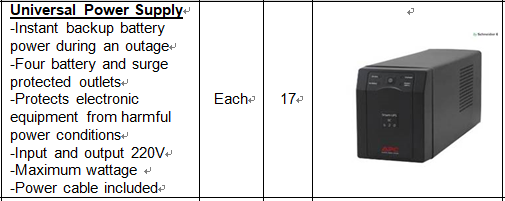 项目名称:约旦不间断电源(UPS)与电压转换插线板采购