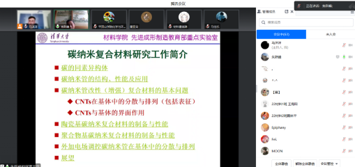 6月1日下午3时,我校太阳成集团tyc122cc入口特邀清华大学朱跃峰给2021级和2022级材料科学与工程专业的全体同学及做了线上报告《碳纳米复合材料研究工作简介》,相关专业的部分教师也参与了会议。