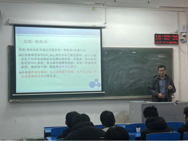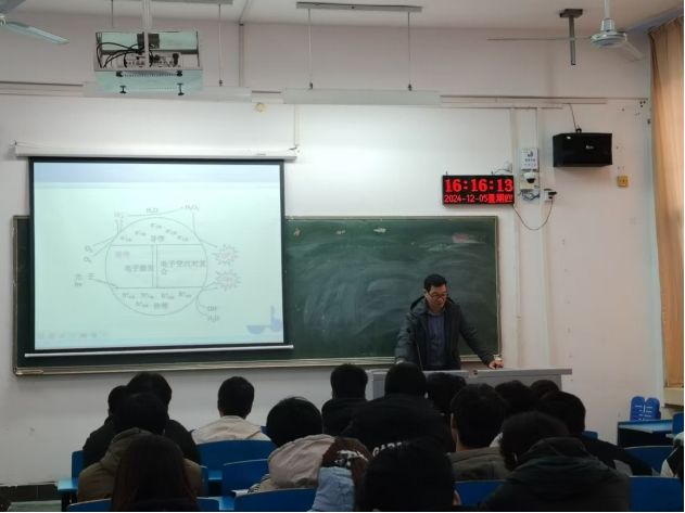 2024年12月5日16点,太阳成集团tyc122cc入口太阳成集团tyc122cc入口王亚波老师在4104教室开展了一场以《二氧化钛光催化技术简介》为主题的学术报告,太阳成集团tyc122cc入口2024级材料1班同学参加了本次学术报告。