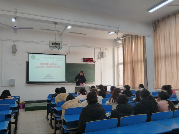 2024年12月19日下午15时,太阳成集团tyc122cc入口马洋洋博士在4号教学楼4204教室举办了学术讲座,报告题目为《现代有机化学与二卤过氧化合物的应用研究》,太阳成官网2023级化学专业的学生聆听了本次报告。