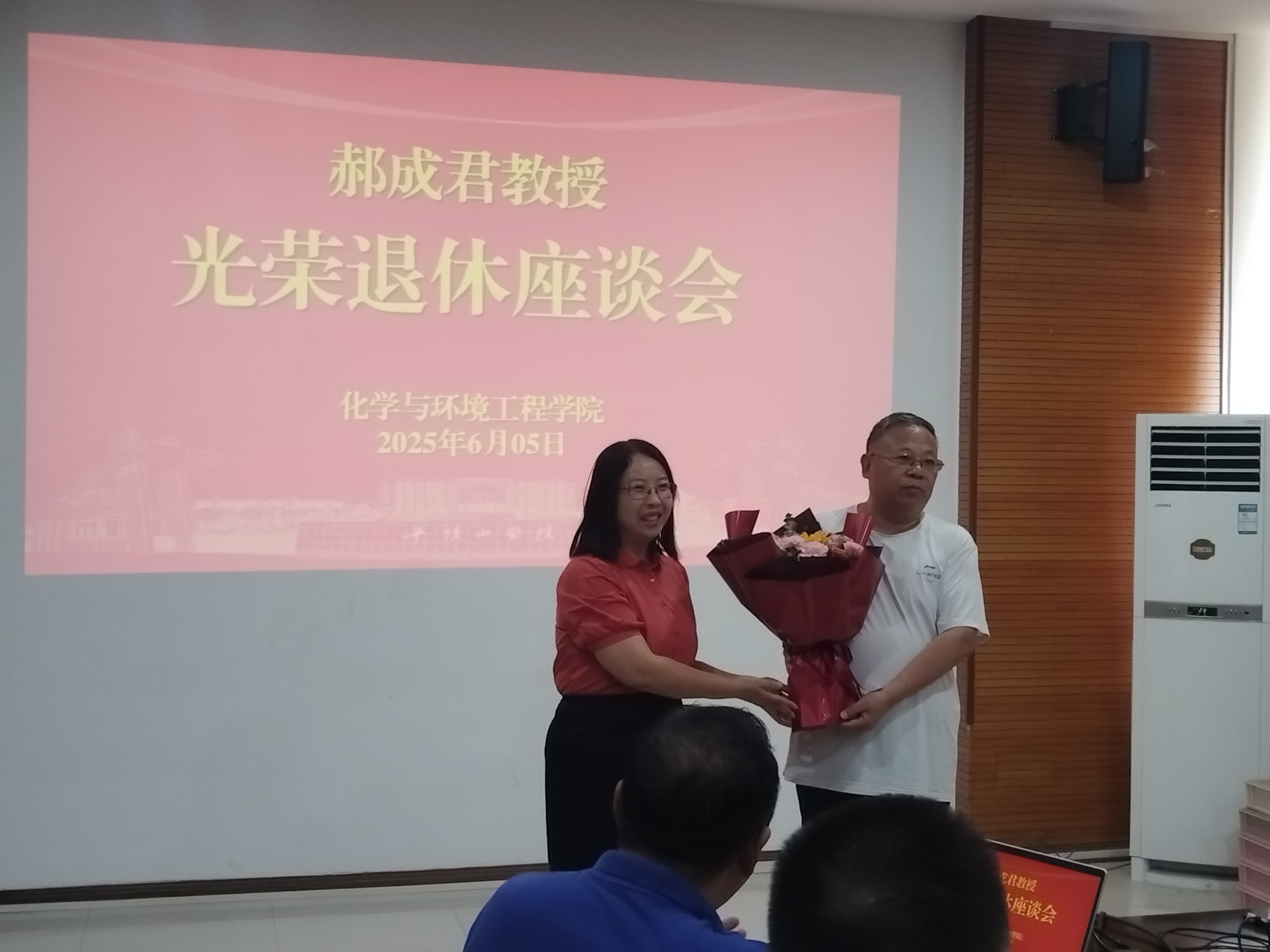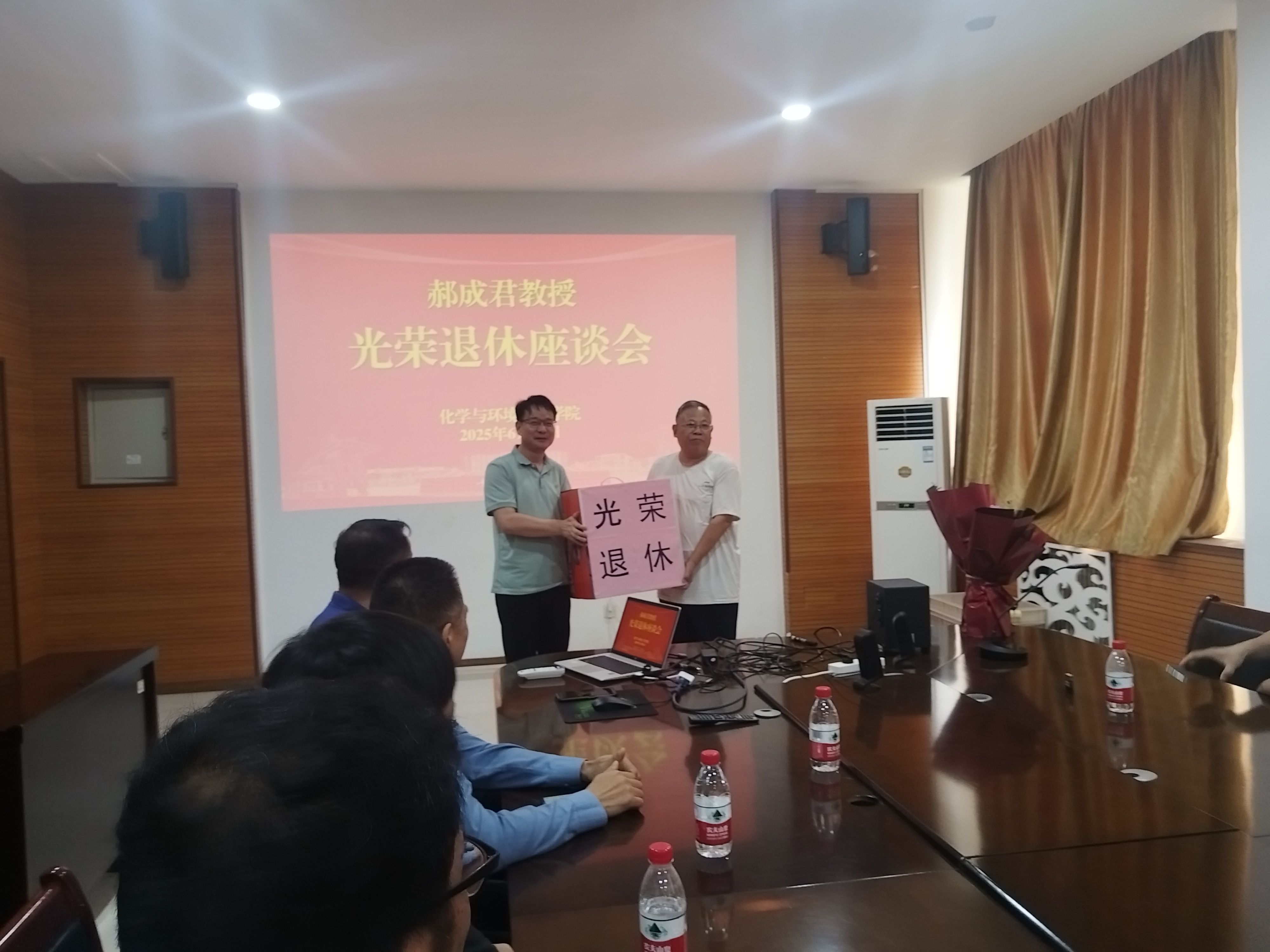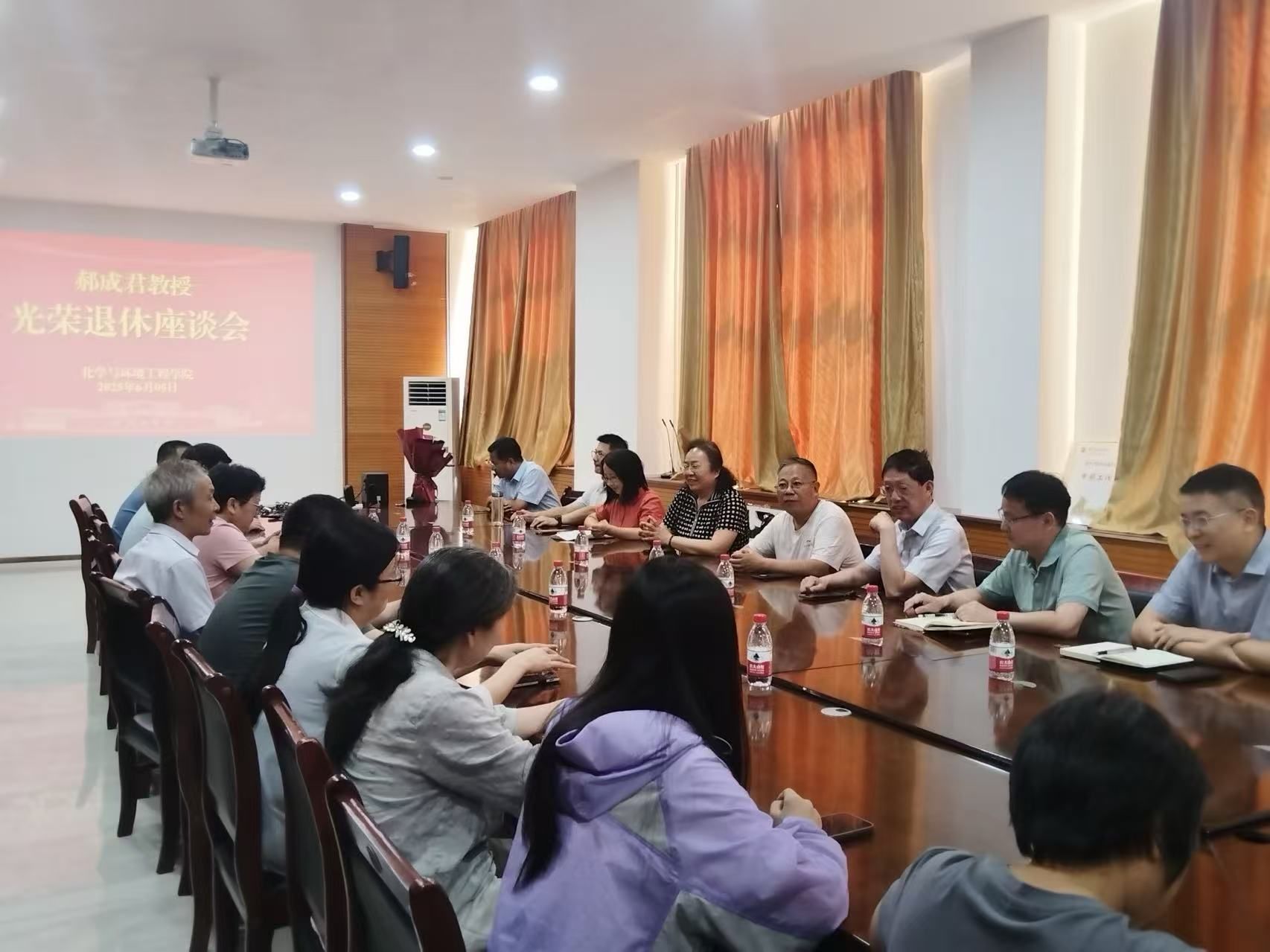 6月5日下午,太阳成集团tyc122cc入口郝成君教授荣誉退休仪式在化学实验楼243会议室举办。教务处处长李青彬、离退处党委书记赵明霞、学院党政领导班子成员、郝成君教授以及各教研室教师代表参会,仪式由学院党委书记曹萍主持。