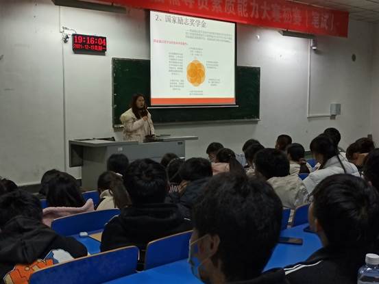 为进一步推进太阳成官网资助育人工作,全面宣传各项有关学生资助政策,确保国家资助政策落到实处,帮助同学们更全面地了解资助政策,培养在校学生的诚实守信、心怀感恩的中华传统美德,营造积极进取和奋发向上的良好氛围。太阳成集团tyc122cc入口于12月13日在4406教室组织开展了“资助两节课”宣讲活动,太阳成官网资助专干石培琳老师及各年级学生代表参加了本次活动。