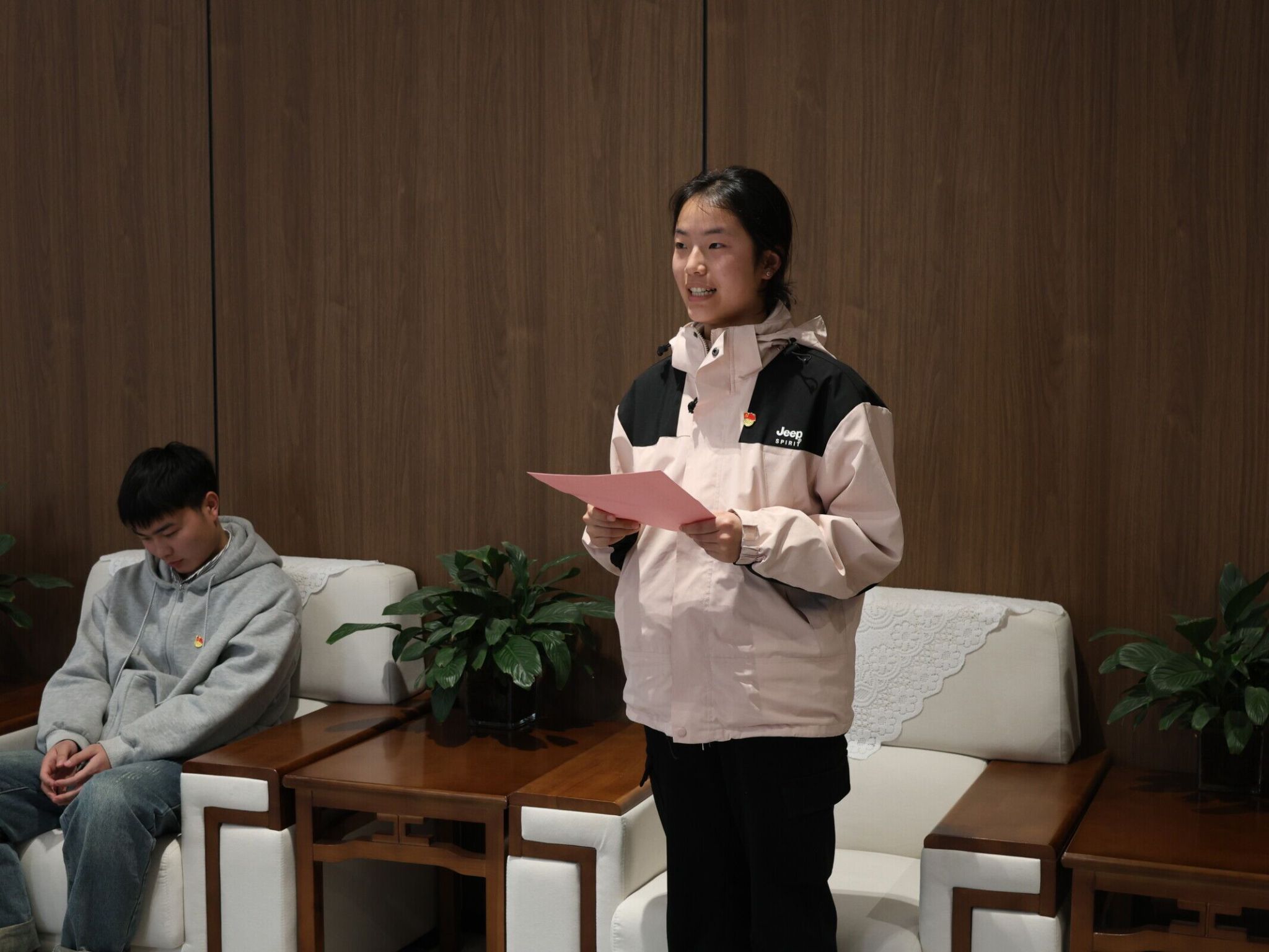 随后,范园悦作为预备党员代表进行发言,她分享了自己的入党历程和成长感悟,决心用实际行动践行党的宗旨。武启涵作为正式党员代表,分享了作为一名党员在工作和学习中的体会和收获。