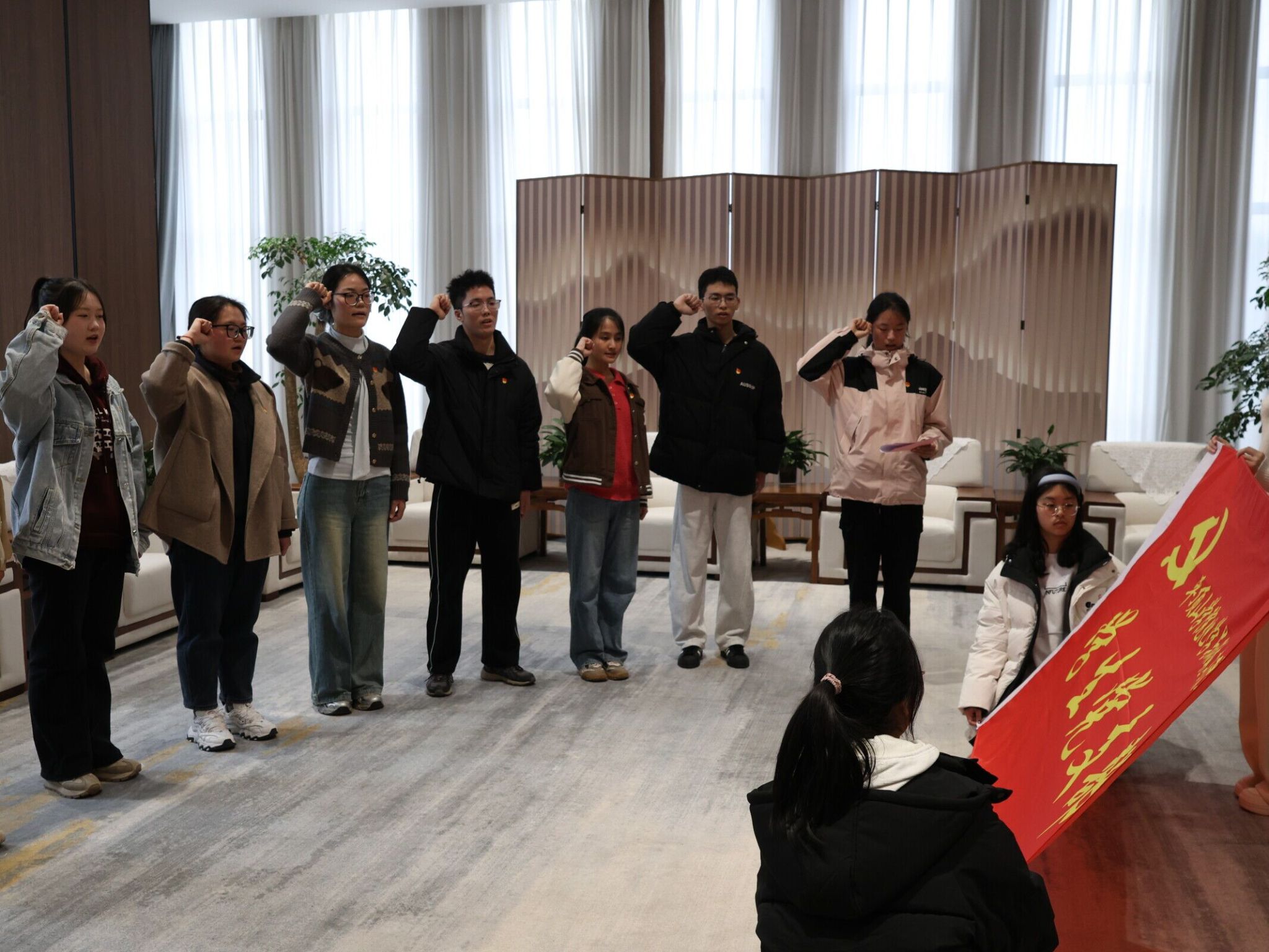 参观结束后,利用创新馆的会议室,举行了预备党员入党宣誓仪式。会上,十三名预备党员佩戴上党徽,面向党旗庄严宣誓,表达了他们为共产主义事业奋斗终身的决心和信念。
